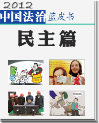 王磊(北京大學(xué)法學(xué)院教授、中國憲法學(xué)會副會長):所以,我們講2011年全國人大常委會宣布法律體系的形成,反映了去年我們在立法方面突出的成就。實(shí)際上我國在立法上也有自己的立法經(jīng)驗(yàn)和方法。立法方面,我們2011年法治藍(lán)皮書里還講到了一些公開、透明,網(wǎng)上征求意見等等,這是2011年民主與法制篇的第一點(diǎn)。