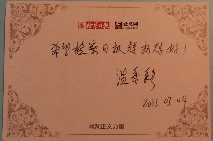 全國政協(xié)委員、民革北京市委人口資源環(huán)境工作委員會副主任溫香彩:希望檢察日報越辦越好!