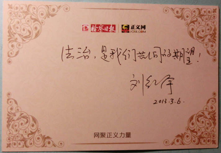 劉紅宇委員寄語檢察日報正義網(wǎng):法治是我們共同的期望