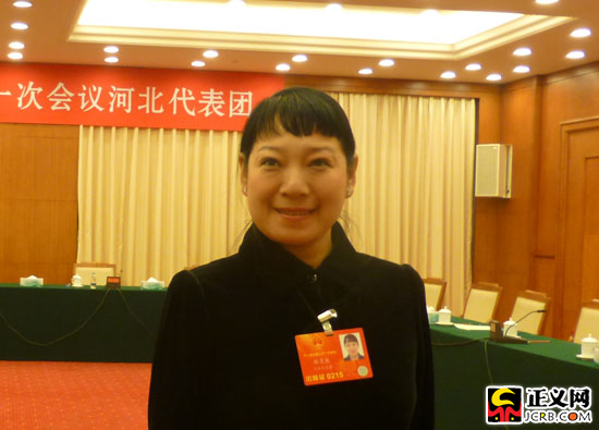 全國人大代表、河北省石家莊市青年評劇團外聯(lián)部部長靳靈展。 姜洪 攝