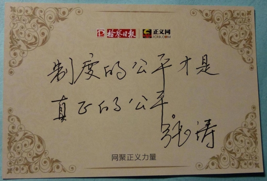 張濤代表寄語(yǔ)檢察日?qǐng)?bào)社正義網(wǎng):制度的公平才是真正的公平