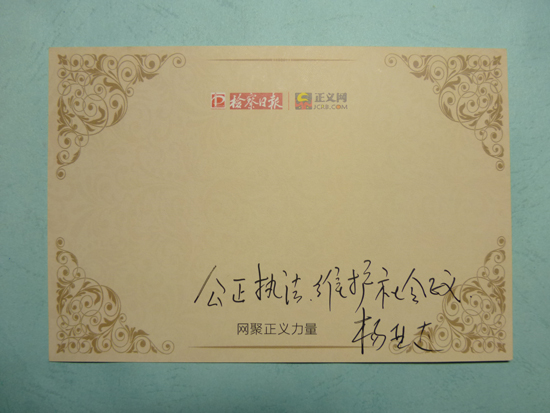 全國人大代表、安徽工業(yè)大學(xué)管理學(xué)院教授楊亞達寄語:“公正執(zhí)法,維護社會正義”。