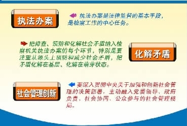 2011年12月,積極響應(yīng)中央加強(qiáng)社會管理的號召,高檢院下發(fā)了《關(guān)于充分發(fā)揮檢察職能參與加強(qiáng)和創(chuàng)新社會管理的意見》,明確了檢察機(jī)關(guān)參與加強(qiáng)和創(chuàng)新社會管理的基本途徑、主要手段和工作重點(diǎn),為檢察機(jī)關(guān)主動融入黨委領(lǐng)導(dǎo)、政府負(fù)責(zé)、社會協(xié)同、公眾參與的社會管理格局,實(shí)現(xiàn)社會管理法治化、規(guī)范化邁出了堅(jiān)實(shí)一步。