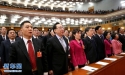 3月3日,中國(guó)人民政治協(xié)商會(huì)議第十二屆全國(guó)委員會(huì)第一次會(huì)議在北京人民大會(huì)堂開幕。這是委員們高唱國(guó)歌。 新華社記者劉衛(wèi)兵攝