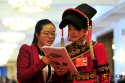 3月10日,全國人大代表聽取最高人民法院工作報告、最高人民檢察院工作報告、國務(wù)院機(jī)構(gòu)改革和職能轉(zhuǎn)變方案。圖為全國人大代表、四川西昌學(xué)院法學(xué)教授王明雯與正義網(wǎng)記者一起看報告材料。正義網(wǎng)記者程丁 攝