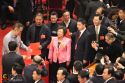 3月11日下午,全國政協(xié)十二屆一次會議在北京人民大會堂舉行第四次全體會議。大會采用無記名投票方式,選舉產(chǎn)生了政協(xié)第十二屆全國委員會主席、副主席、秘書長和常務(wù)委員。新當(dāng)選的全國政協(xié)主席、副主席平均年齡為63.7歲,副主席中,中共黨員11名,非中共人士12名,少數(shù)民族人士4名,女性2名。圖為委員們來到投票箱前投票。正義網(wǎng)記者徐伯黎 攝