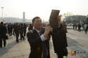 3月5日,第十二屆全國人民代表大會第一次會議在北京人民大會堂開幕,四川代表張叔平手持ipad一路拍攝來到大會堂前。肖杰 攝