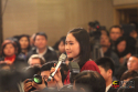 澳大利亞環(huán)球凱哥傳媒集團記者提問。(記者徐伯黎 攝)
