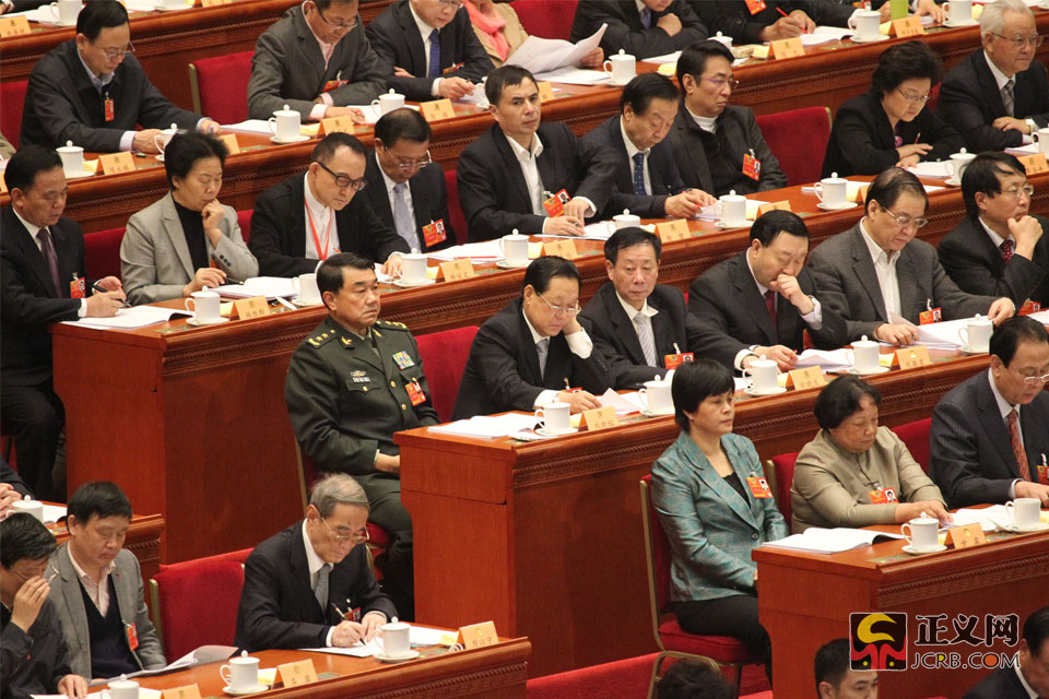 2013年3月7日下午3時(shí),全國(guó)政協(xié)十二屆一次會(huì)議第二次全體會(huì)議在人民大會(huì)堂舉行。中共中央政治局委員、國(guó)務(wù)委員兼國(guó)務(wù)院秘書長(zhǎng)馬凱,以及中共中央、國(guó)務(wù)院有關(guān)部門的負(fù)責(zé)同志出席了大會(huì)。大會(huì)由董建華主持,16名政協(xié)委員就反腐倡廉、空氣治理、城鎮(zhèn)化、三農(nóng)、改革、權(quán)力公開(kāi)、民生等熱點(diǎn)問(wèn)題進(jìn)行發(fā)言。記者徐伯黎 攝