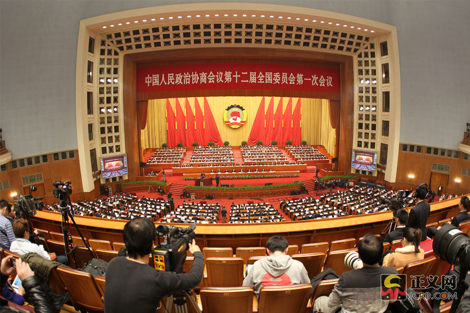 2013年3月7日下午3時,全國政協(xié)十二屆一次會議第二次全體會議在人民大會堂舉行。中共中央政治局委員、國務(wù)委員兼國務(wù)院秘書長馬凱,以及中共中央、國務(wù)院有關(guān)部門的負(fù)責(zé)同志出席了大會。大會由董建華主持,16名政協(xié)委員就反腐倡廉、空氣治理、城鎮(zhèn)化、三農(nóng)、改革、權(quán)力公開、民生等熱點問題進(jìn)行發(fā)言。記者徐伯黎 攝