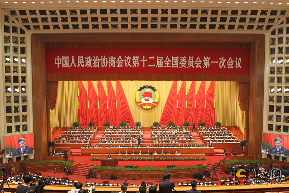 2013年3月7日下午3時,全國政協(xié)十二屆一次會議第二次全體會議在人民大會堂舉行。中共中央政治局委員、國務(wù)委員兼國務(wù)院秘書長馬凱,以及中共中央、國務(wù)院有關(guān)部門的負(fù)責(zé)同志出席了大會。大會由董建華主持,16名政協(xié)委員就反腐倡廉、空氣治理、城鎮(zhèn)化、三農(nóng)、改革、權(quán)力公開、民生等熱點(diǎn)問題進(jìn)行發(fā)言。記者徐伯黎 攝