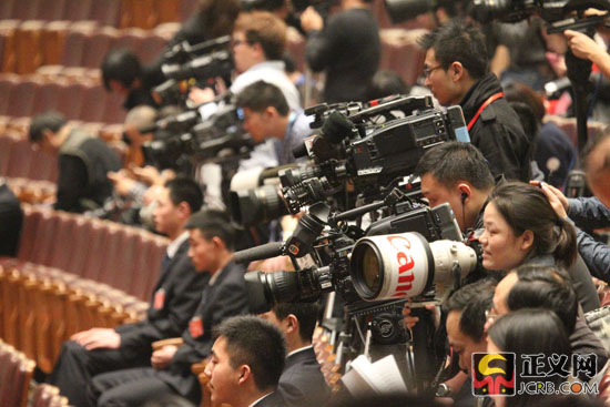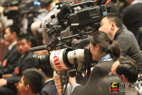 攝影、攝像全套設(shè)備近20公斤,在全國(guó)兩會(huì)會(huì)場(chǎng)上,男記者扛著都會(huì)滿頭大汗,然而女?dāng)z影、攝像記者,扛著“長(zhǎng)槍短炮”如男同胞一樣跑前跑后,巾幗不讓須眉。圖為一位女?dāng)z影記者在人民大會(huì)堂二樓搶鏡頭。記者徐伯黎 攝
