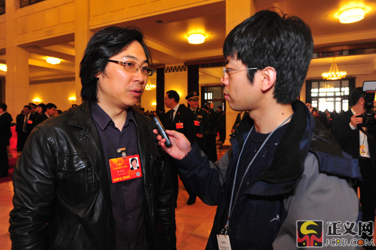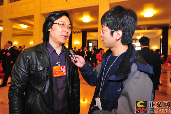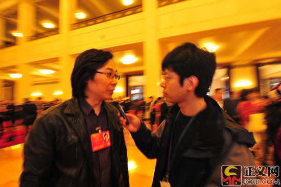 記者在人民大會(huì)堂采訪廖昌永代表 正義網(wǎng)記者 程丁/攝
