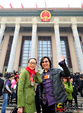 廖昌永、奚美娟同行于大會(huì)堂長(zhǎng)階上。正義網(wǎng)記者 程丁/攝