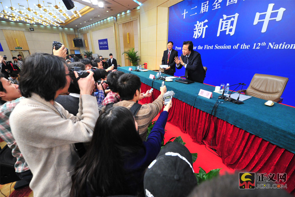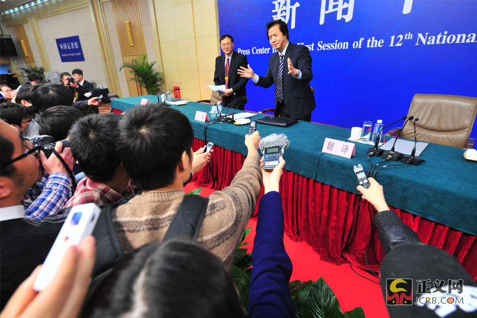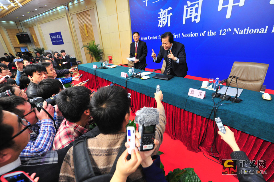3月11日上午,十二屆全國人大一次會議新聞中心舉行記者會,中央機構(gòu)編制委員會辦公室王峰副主任將就“《國務(wù)院機構(gòu)改革和職能轉(zhuǎn)變方案》有關(guān)內(nèi)容和考慮”回答中外記者的提問。王峰說:“法無定法,特別是在改革這個時期過程當(dāng)中,要與時俱進。改革就是變法,修改法也是改革。改革后,修改法律后,是為了更好的依法行政。”正義網(wǎng)記者程丁 攝