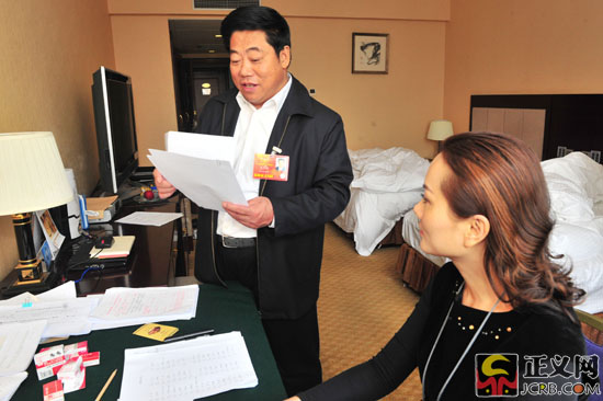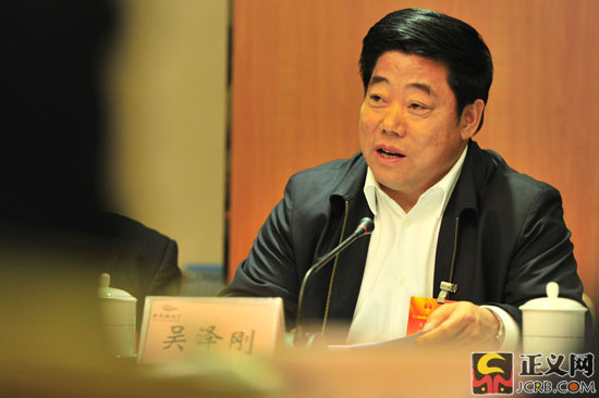 3月11日上午,四川代表團(tuán)分組討論“兩高”報(bào)告,全國(guó)人大代表吳澤剛在會(huì)場(chǎng)接受本報(bào)記者采訪。正義網(wǎng)記者 程丁/攝