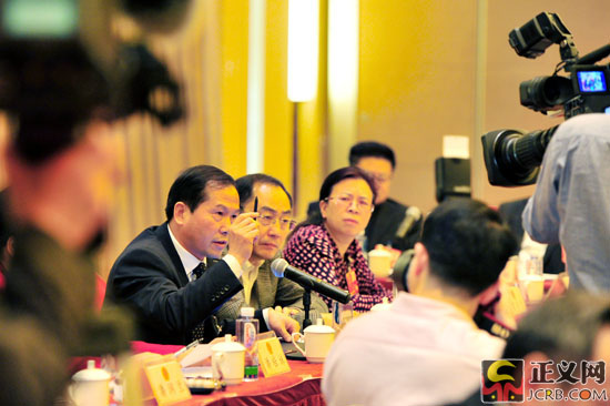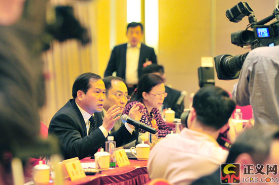 3月10日下午,在審議“兩高”工作報告時,全國人大代表、中國電信股份有限公司湖南分公司黨組書記、總經(jīng)理廖仁斌說:“食品安全、環(huán)境安全和信心安全,是當(dāng)今社會最受關(guān)注的,是百姓的基本安全,檢察院和法院要保護人民在這些方面的安全!闭x網(wǎng)記者 程丁/攝