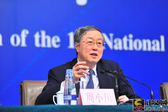 3月13日下午,十二屆全國人大一次會(huì)議新聞中心在梅地亞舉行記者會(huì),中國人民銀行行長(zhǎng)周小川等就“貨幣政策與金融改革”的相關(guān)問題回答中外記者的提問。圖為周小川回答記者提問。正義網(wǎng)記者 程丁/攝