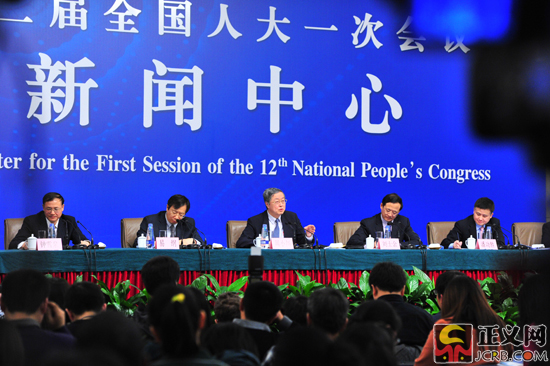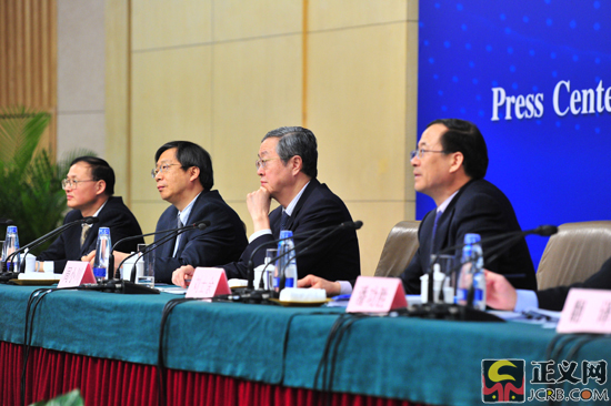 3月13日下午,十二屆全國人大一次會(huì)議新聞中心在梅地亞舉行記者會(huì),中國人民銀行行長(zhǎng)周小川等就“貨幣政策與金融改革”的相關(guān)問題回答中外記者的提問。正義網(wǎng)記者 程丁/攝