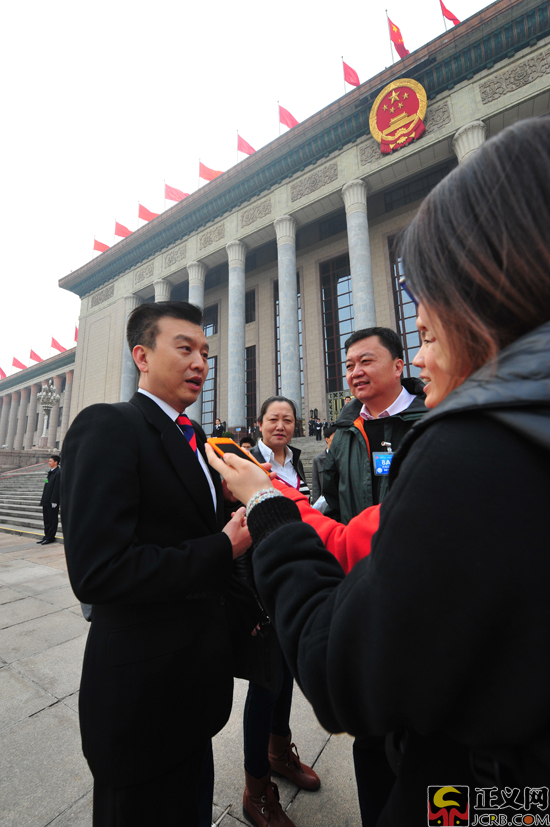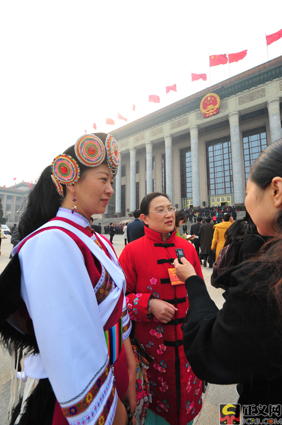 3月16日下午,十二屆全國(guó)人民代表大會(huì)第一次會(huì)議在人民大會(huì)堂舉行第六次全體會(huì)議。會(huì)議開(kāi)始前,云南代表團(tuán)代表在人民大會(huì)堂前接受記者采訪(fǎng)。正義網(wǎng)記者程丁 攝