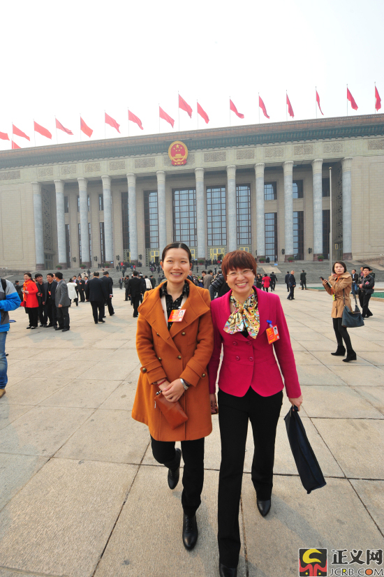兩位代表在大會堂前合影。正義網(wǎng)記者記者程丁 攝
