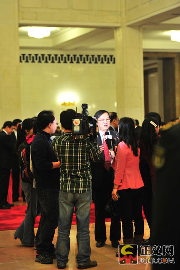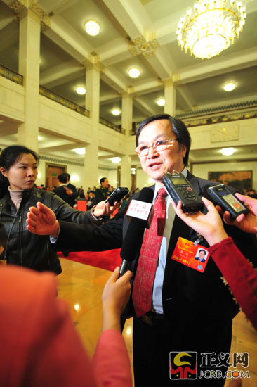 3月16日下午,十二屆全國(guó)人民代表大會(huì)第一次會(huì)議在人民大會(huì)堂舉行第六次全體會(huì)議。全國(guó)人大代表、溫州醫(yī)學(xué)院院長(zhǎng)瞿佳在人民大會(huì)堂接受記者采訪時(shí)說(shuō):“看病難的問(wèn)題,基層是不難的。只是大醫(yī)院難,省級(jí)醫(yī)院難,首都的名醫(yī)院難,人滿為患;鶎拥尼t(yī)院其實(shí)是門(mén)可羅雀!闭x網(wǎng)記者程丁 攝