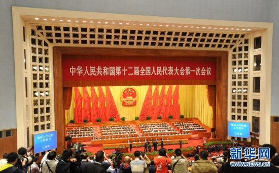 3月10日,十二屆全國(guó)人大一次會(huì)議在北京人民大會(huì)堂舉行第三次全體會(huì)議。 新華社記者 楊宗友 攝