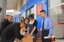 韓坪村代表在夾關(guān)鎮(zhèn)政府領(lǐng)取救災(zāi)物資后簽字,檢察干警現(xiàn)場監(jiān)督。萬軍 攝