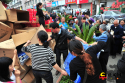 蘆山縣檢察院干警在救災(zāi)物資發(fā)放點(diǎn)配合工作人員為災(zāi)民發(fā)放食品和生活必需品。正義網(wǎng)記者程丁/攝