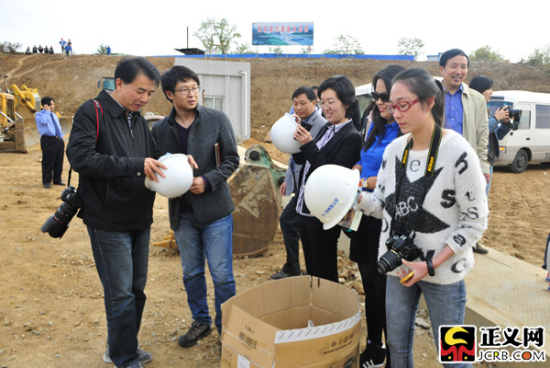 “看得見的正義”中央新聞媒體采訪團(tuán)參觀河南省南陽市淅川縣渠首工地現(xiàn)場。閆昭 攝