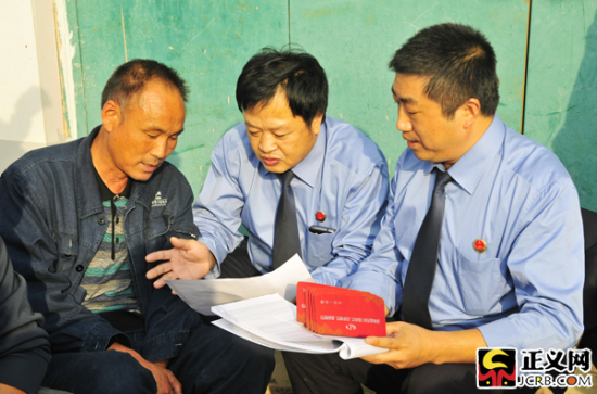 河南省南陽市淅川縣檢察院檢察官正在跟村民核對移民拆遷款的金額。閆昭 攝