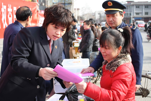 "謝謝檢察官告訴我網(wǎng)購(gòu)咋咋維權(quán),我這正為網(wǎng)購(gòu)了質(zhì)次商品發(fā)愁呢……!"3月15日,在河南省社旗縣新世紀(jì)廣場(chǎng),一位農(nóng)村女青年感慨地對(duì)正在此地進(jìn)行"3·15"法制宣傳的檢察官說(shuō)。當(dāng)日是消費(fèi)者權(quán)益保護(hù)日,為深入開展黨的群眾路線教育實(shí)踐活動(dòng),社旗縣檢察院黨員志愿者服務(wù)隊(duì),聯(lián)合該縣工商部門開展"送法進(jìn)社區(qū)"法制宣傳活動(dòng)。宣傳新《消費(fèi)者權(quán)益保護(hù)法》,為現(xiàn)場(chǎng)群眾進(jìn)行講解、答疑,在向社區(qū)居民提供法律咨詢的同時(shí),宣傳檢察機(jī)關(guān)職能,發(fā)放宣傳手冊(cè)和預(yù)防職務(wù)犯罪提醒卡!