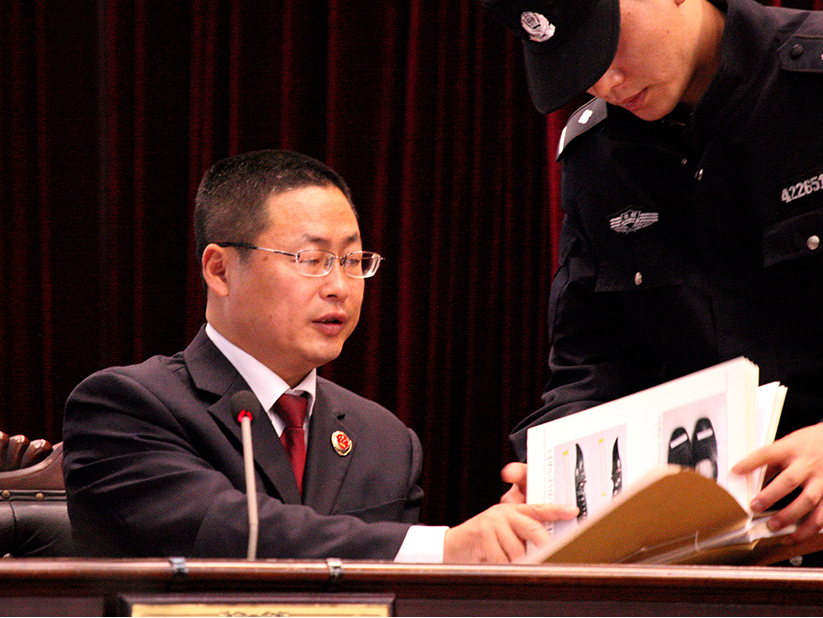 9點30分,法院準(zhǔn)時開庭。持續(xù)兩小時的庭審中,被告人童俊中對自己的瘋狂行為毫無懺悔之意,多次辯稱殺人并非出于“故意”。公訴人付建中宣讀起訴書,反駁被告與律師的辯護意見,發(fā)表公訴詞,聲音洪亮、思路清晰,邏輯縝密,觀點明確,當(dāng)庭建議對被告人童俊中判處死刑。劉明 攝