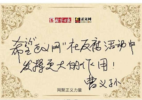全國政協(xié)委員、中國政法大學(xué)教授曹義孫寄語:希望“正義網(wǎng)”在反腐活動(dòng)中發(fā)揮更大的作用! 正義網(wǎng)記者曹麗輝 攝