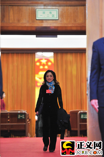 全國人大代表、重慶市川劇院院長沈鐵梅步入會(huì)場。正義網(wǎng)記者 程丁/攝