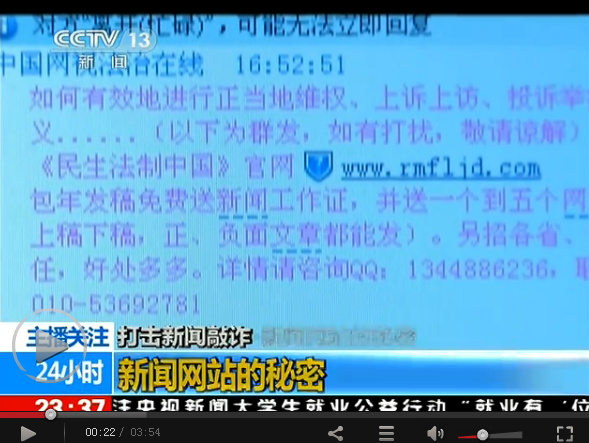 | “以真記者為依托,如果敲詐不成就在媒體上予以曝光,從事詐騙活動,是這類新聞敲詐行為的慣用伎倆。”據(jù)了解,少數(shù)媒體片面追求經(jīng)濟(jì)效益,隨意在基層設(shè)置分支機(jī)構(gòu)、聘用人員,相關(guān)管理卻十分混亂。 |