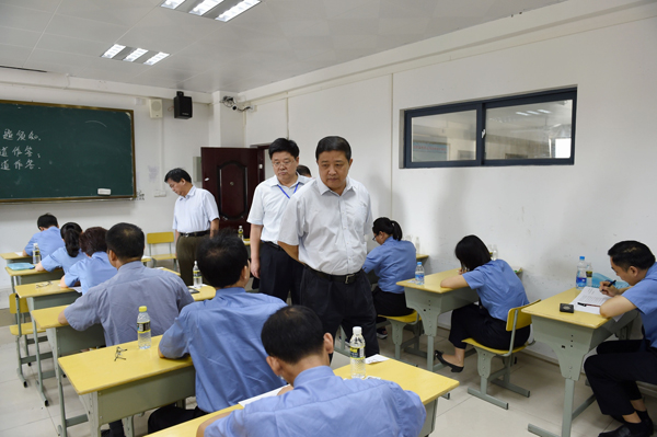 根據(jù)《海南省檢察機(jī)關(guān)司法體制改革試點(diǎn)過(guò)渡期檢察官選任工作實(shí)施方案》,4月2日,該省檢察院組織975名檢察人員參加檢察官選任考試。該省人大常委會(huì)副主任賈東軍(右一)、省政協(xié)副主席王應(yīng)際(左一),省檢察院檢察長(zhǎng)賈志鴻(中)對(duì)考場(chǎng)情況進(jìn)行巡視。吳勇海 薛鴻肖 攝