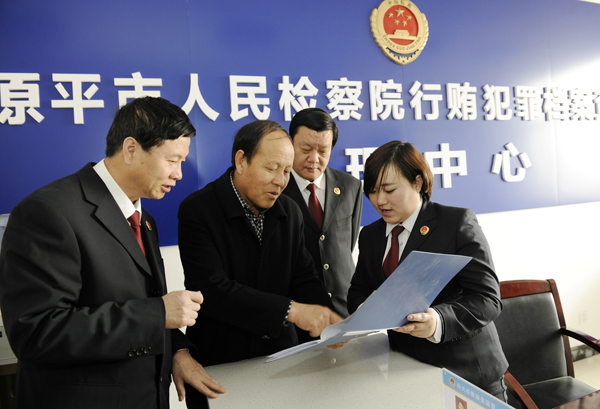 近日,全國人大代表、山西省原平市子干鄉(xiāng)子干村黨支部書記栗翠田到原平市檢察院觀看了陽光檢察一站式檢務(wù)大廳,稱贊檢察機關(guān)工作能自覺接受人大代表和社會監(jiān)督,并希望檢察機關(guān)加大查辦和預(yù)防職務(wù)犯罪力度,維護公正司法。郭超美 趙晉民 攝