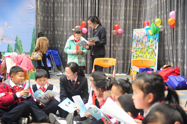 重慶市沙坪壩區(qū)檢察院檢察官近日來到重慶圖書館,把根據(jù)近年來辦理的未成年人犯罪典型案例等自制的漫畫手冊,發(fā)放給同學(xué)們,并耐心講解。沈義 彭川 攝