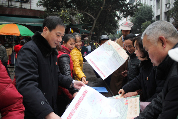 1月8日上午,重慶市永川區(qū)檢察院第一檢察室的干警來到陳食鎮(zhèn)芋荷灣村,趁著趕集天,為群眾發(fā)放印有檢察機關、檢察室職能職責及聯(lián)系方式的“檢民連心掛歷”。據悉,為進一步宣傳檢察室職能職責,該院四個派駐基層檢察室計劃從一月開始到春節(jié)前夕,對轄區(qū)內所有鎮(zhèn)街進行全覆蓋走訪,收集民情民意,將發(fā)放一萬份“檢民連心掛歷”。沈義 黃進 攝
