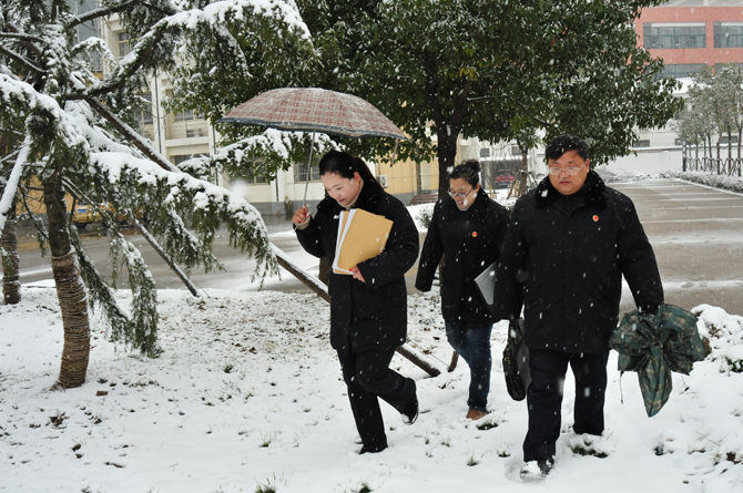 2015年1月28日,安徽省合肥市肥西縣檢察院控申檢察人員對一起群眾信訪案件,踏著大雪進行現(xiàn)場走訪,調(diào)查取證,以便及時答復群眾,引導訴訟,化解矛盾。周云 攝