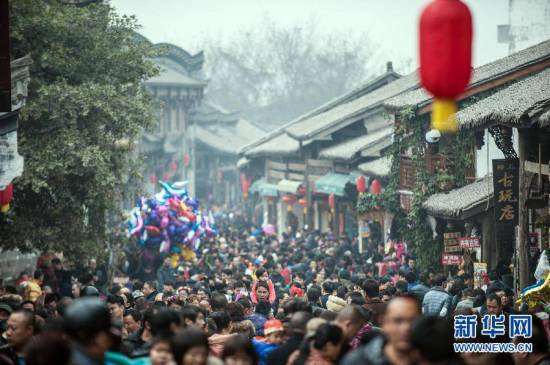 2014年2月2日,游客在成都洛帶古鎮(zhèn)景區(qū)游玩,2014年春節(jié)黃金周期間,全國(guó)共接待游客2.31億人次。