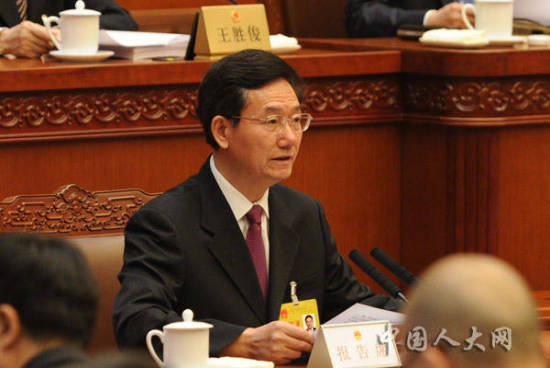 2月25日下午,十二屆全國人大常委會第十三次會議舉行第一次全體會議,全國人大法律委員會副主任委員蘇澤林作關(guān)于反恐怖主義法草案修改情況的匯報。中國人大網(wǎng) 李杰 攝