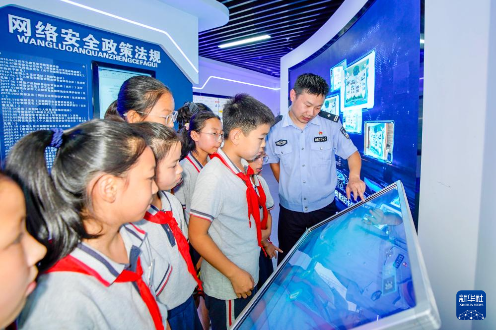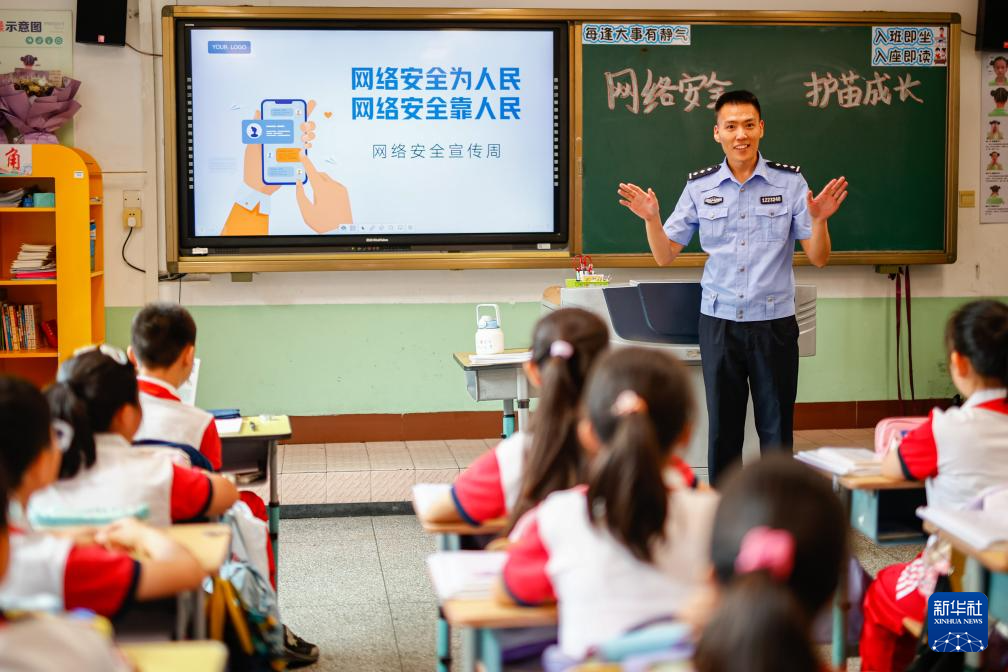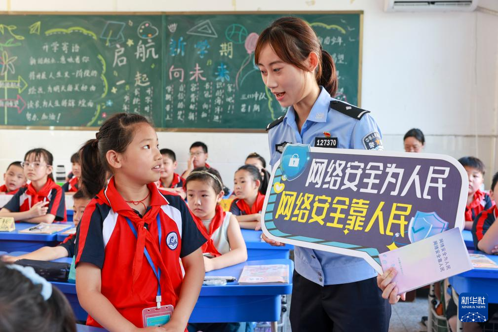 9月15日,在江蘇省泰興市襟江小學(xué)教育集團佳源校區(qū),泰興市公安局城北派出所民警通過互動方式在給學(xué)生講解網(wǎng)絡(luò)安全知識。