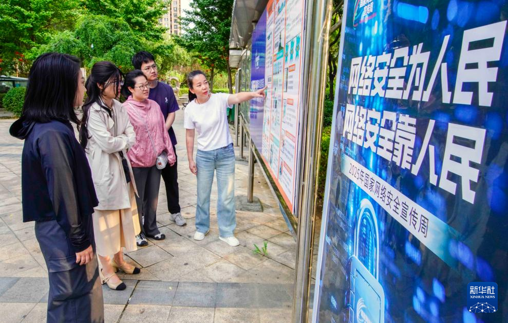 9月15日,河北省遵化市華明路街道依水現(xiàn)代城社區(qū)的居民在觀看網(wǎng)絡(luò)安全宣傳欄。