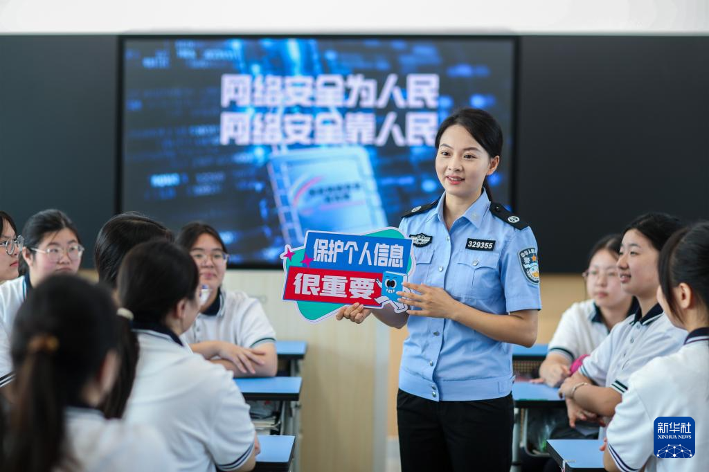 9月15日,浙江省舟山市岱山縣公安局民警與轄區(qū)高亭中學(xué)學(xué)生進行網(wǎng)絡(luò)安全知識競答互動。