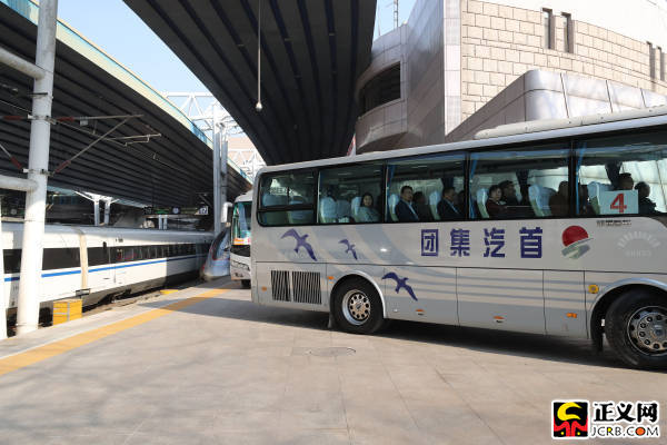 湖南代表團(tuán)的車輛駛出北京西站,前往所在代表駐地。記者張哲/攝