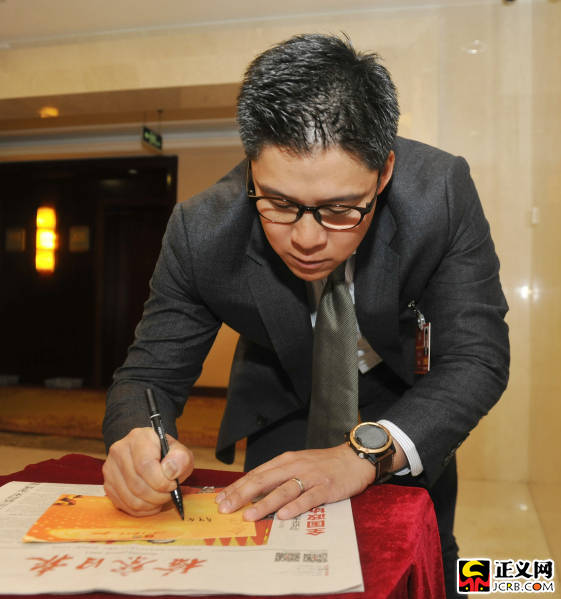 全國(guó)政協(xié)委員、霍英東集團(tuán)副總裁霍啟剛為廣大青少年兒童們寫下寄語(yǔ)。記者閆昭 攝