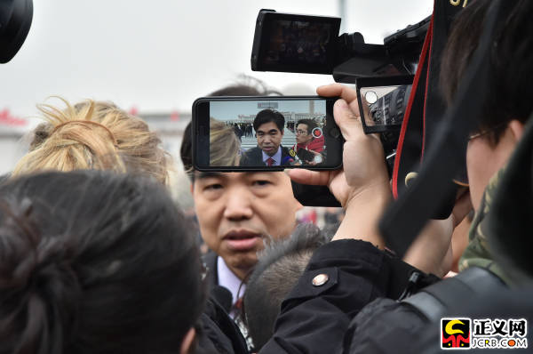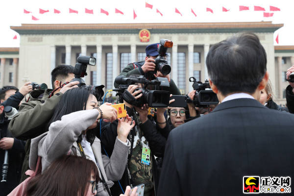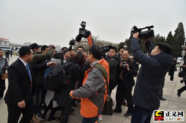 3月4日上午,十三屆全國人大一次會議舉行預(yù)備會議。預(yù)備會議后,大會主席團(tuán)舉行第一次會議。代表們剛剛到達(dá)會場外就被媒體包圍。記者張哲 攝