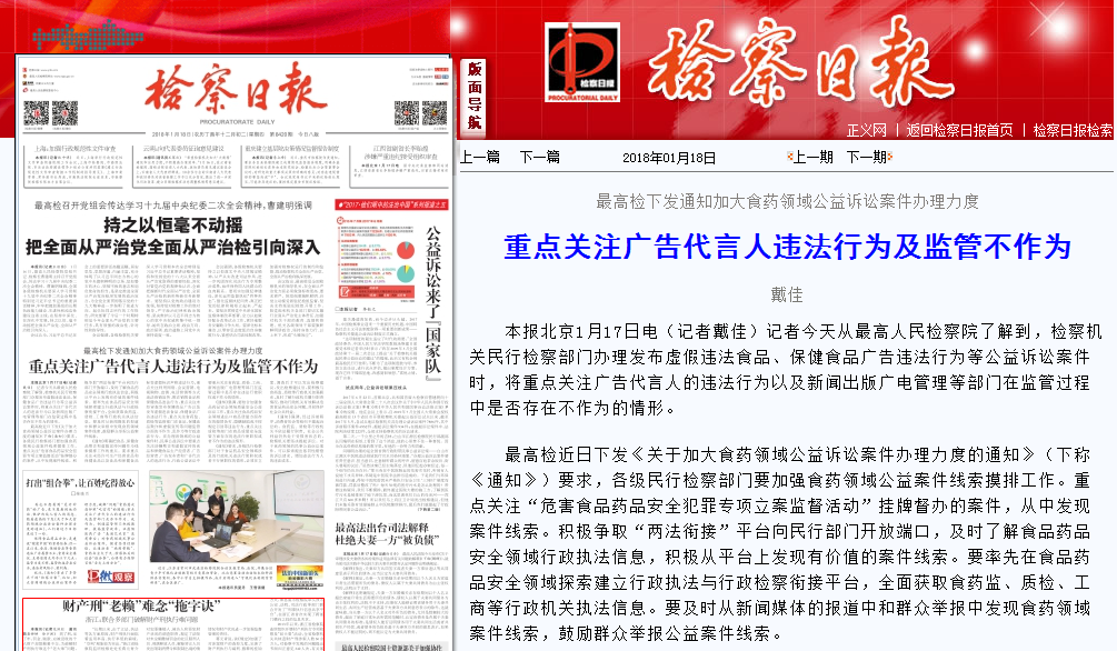 《通知》明確把食品、保健食品欺詐和虛假宣傳問題作為線索摸排工作的重點(diǎn)。要求重點(diǎn)關(guān)注未經(jīng)許可生產(chǎn)經(jīng)營食品和保健食品以及食品和保健食品標(biāo)簽虛假標(biāo)識聲稱違法行為,重點(diǎn)關(guān)注利用網(wǎng)絡(luò)、會議營銷、電視購物、直銷、電話營銷等方式違法營銷宣傳、欺詐銷售食品和保健食品違法行為,重點(diǎn)關(guān)注未經(jīng)審查發(fā)布保健食品廣告以及發(fā)布虛假違法食品、保健食品廣告違法行為,重點(diǎn)關(guān)注食藥監(jiān)、質(zhì)檢等監(jiān)管部門在食品、保健食品欺詐和虛假宣傳等問題監(jiān)管方面的不作為、亂作為等行政違法行為。